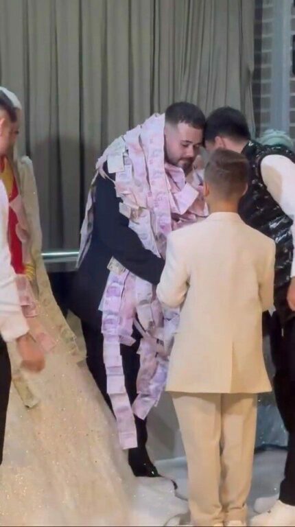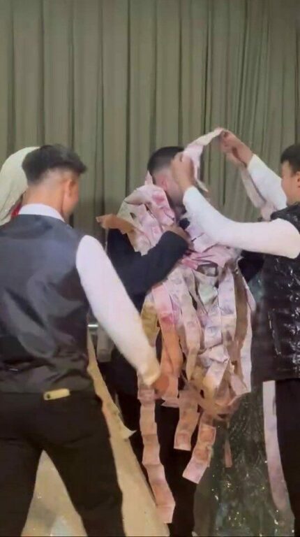 Bursa’da düzenlenen bir düğünde ilginç görüntüler yaşandı. Beyda ve Enes çiftinin mutlu gününde takı merasiminde salona getirilen metrelerce uzayan para şeridi davetlilerin dikkatini çekti. Davetliler arasında şaşkın bakışlar olurken, bazı misafirler telefonlarına sarılarak o anları kayda aldı. 50 metre boyunca uzanan para şeridinin damadın üzerine tek tek dolanması renkli görüntülere sahne oldu.