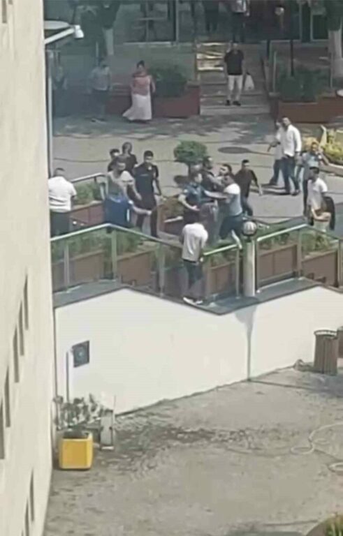 Olay, merkez Osmangazi ilçesi Hacı İlyas Mahallesi’nde bulunan Bursa Adliyesi’nde meydana geldi. Edinilen bilgiye göre, dava sonrası Adliye çıkışında karışılan iki taraf birbirine girdi. Yumruk ve tekmelerin havaya uçuştuğu kavgaya polis müdahale etti. Taraflar güçlükle ayrılırken olaya karışan 8 kişi gözaltına alındı. Kavga anı çevrede bulunan bir vatandaşın kamerası tarafından kaydedildi.