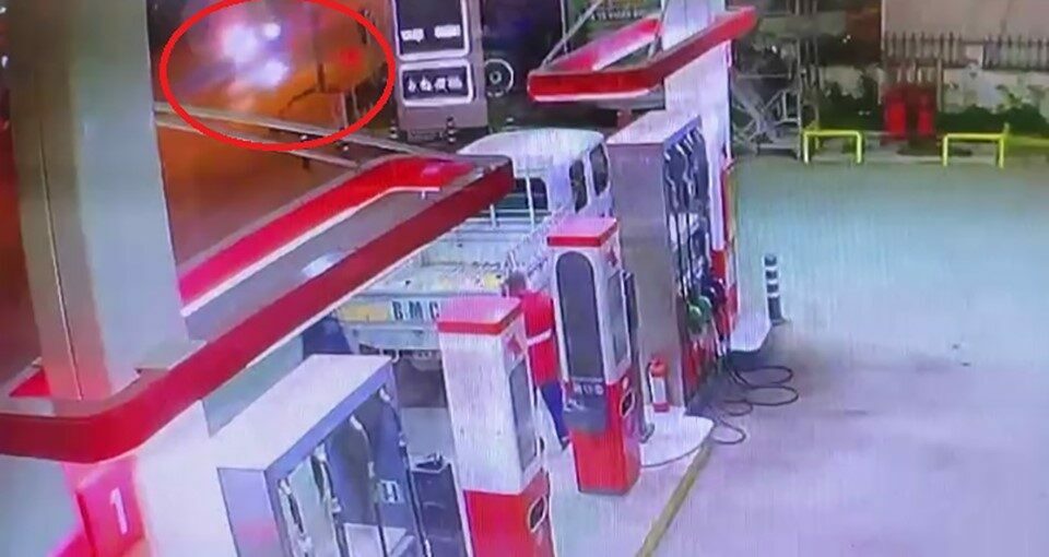 Korku dolu anlar, akaryakıt istasyonunun güvenlik kamerasına saniye saniye yansıdı.
