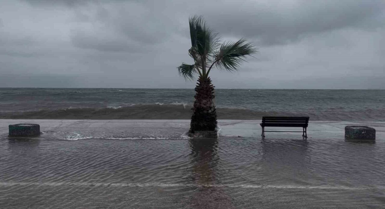 Bursa’nın Gemlik ilçesine bağlı Kurşunlu Mahallesi’nde sabah saatlerinde etkili olan fırtına ve sağanak yağış, hayatı olumsuz etkiledi. Şiddetli rüzgârın kabarttığı dalgalar sahil yolunu aşarak karayoluna ve mahalle sokaklarına kadar ulaştı. Fırtına sebebiyle denizle karayolu birleşti, evler sular altında kaldı.