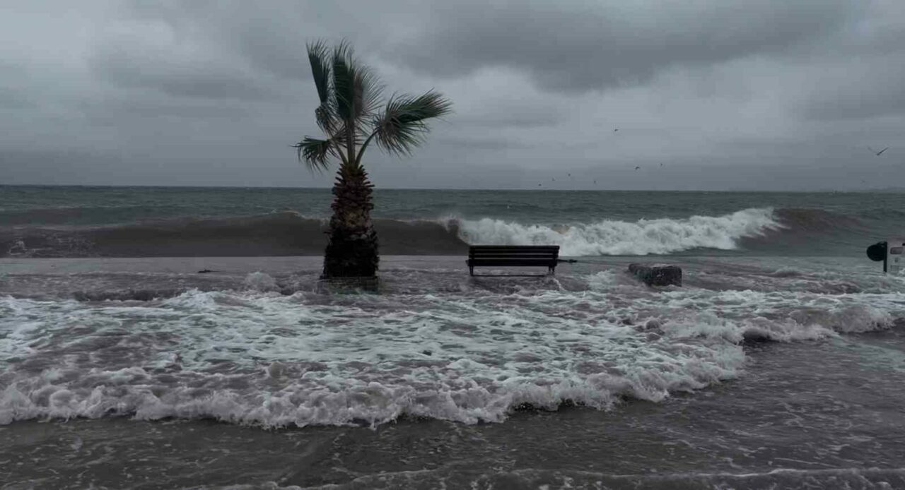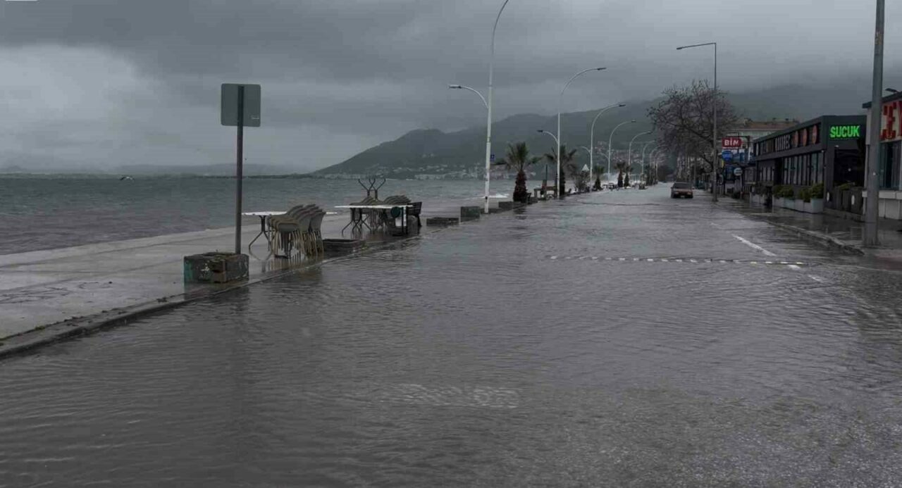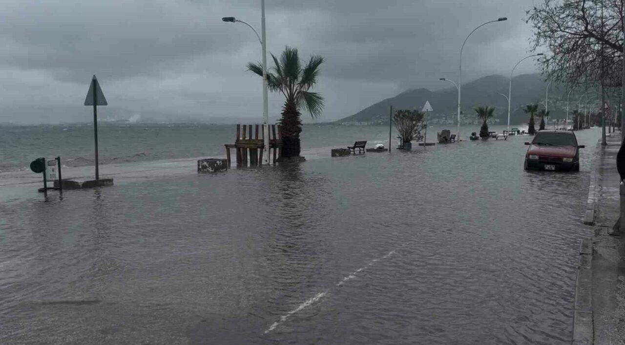 Bursa’nın Gemlik ilçesine bağlı Kurşunlu Mahallesi’nde sabah saatlerinde etkili olan fırtına ve sağanak yağış, hayatı olumsuz etkiledi. Şiddetli rüzgârın kabarttığı dalgalar sahil yolunu aşarak karayoluna ve mahalle sokaklarına kadar ulaştı. Fırtına sebebiyle denizle karayolu birleşti, evler sular altında kaldı.
