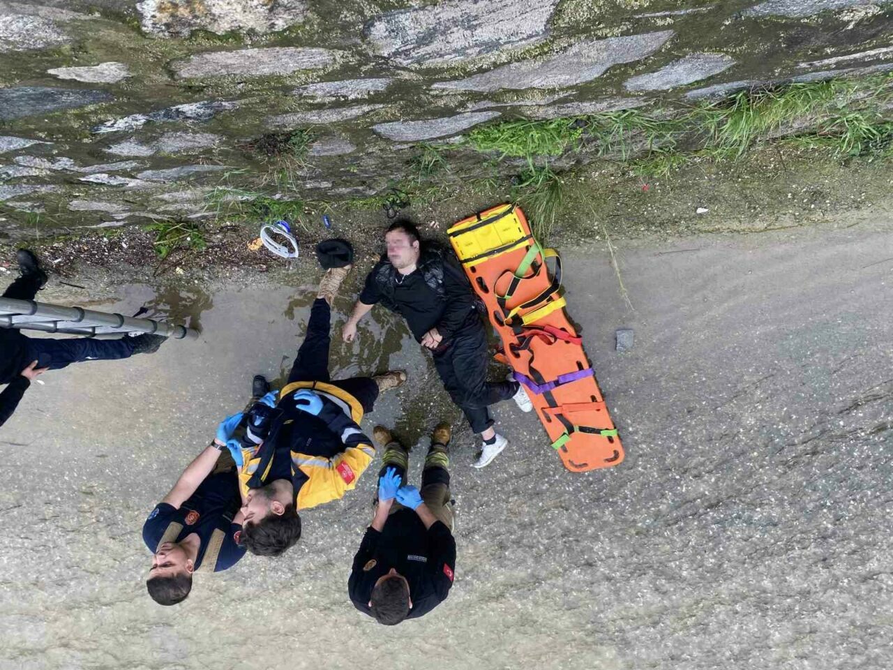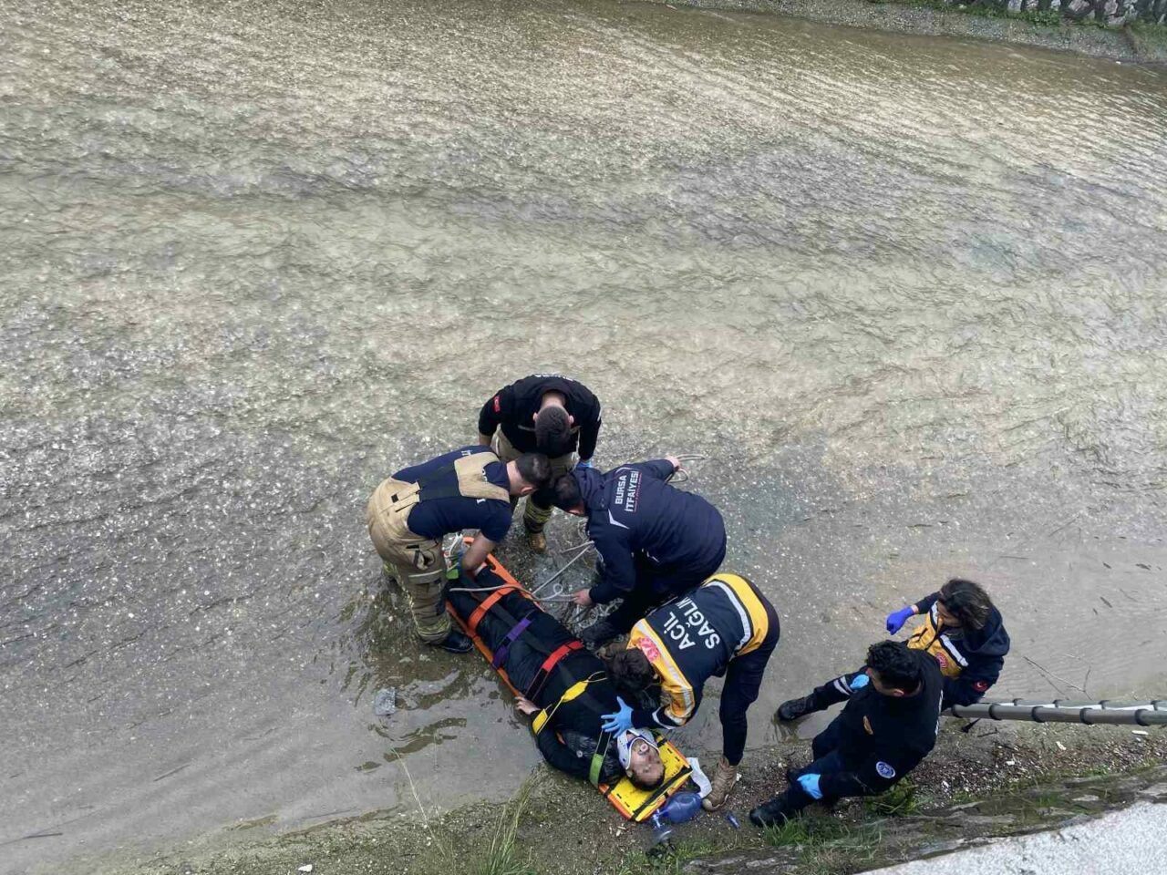 Bursa’nın Yıldırım ilçesinde dereye düşen genç adam, kalp masajıyla hayata döndürüldü.