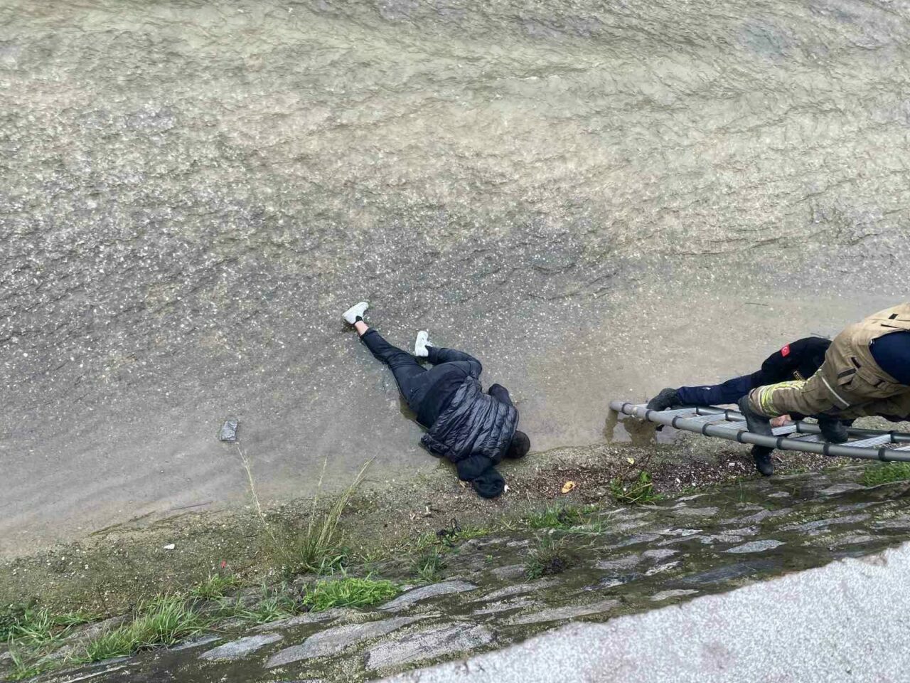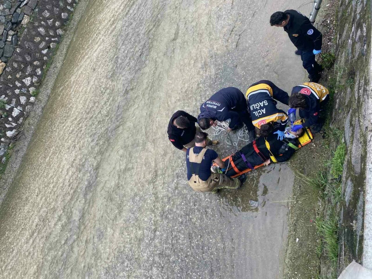 Bursa’nın Yıldırım ilçesinde dereye düşen genç adam, kalp masajıyla hayata döndürüldü.