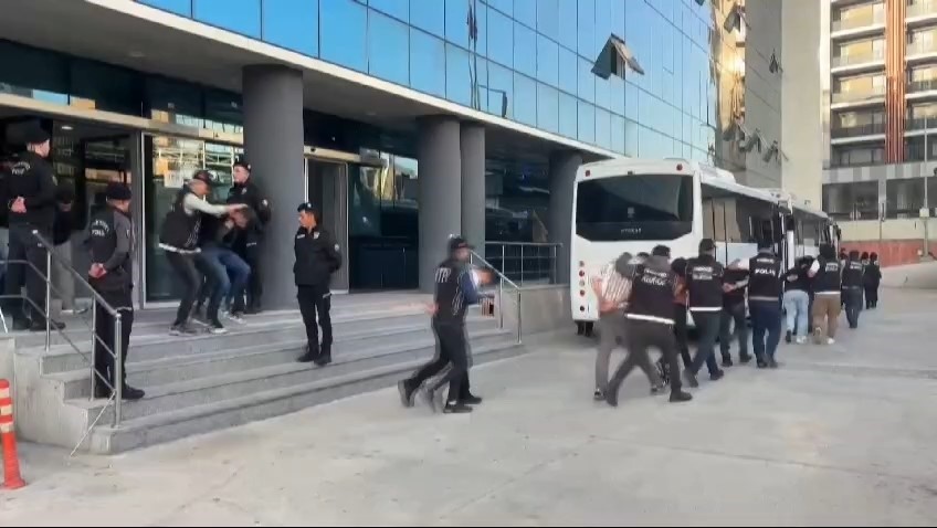 Eş zamanlı olarak yapılan baskınlarda gözaltına alınan 67 kişi emniyet müdürlüğüne götürüldü. Emniyetteki işlemleri tamamlanan 67 şüpheliden 53’ü çıkarıldığı mahkemece tutuklanarak cezaevine gönderildi.