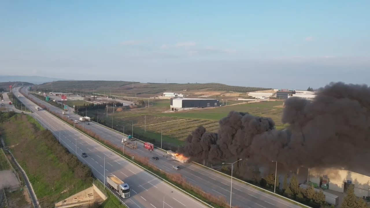 Edinilen bilgiye göre, bir tırın dorsesi henüz bilinmeyen bir sebeple devrildi. Devrilen dorse alev alırken sürücü dorseyi tırdan ayırarak durumu itfaiye ekiplerine bildirdi.