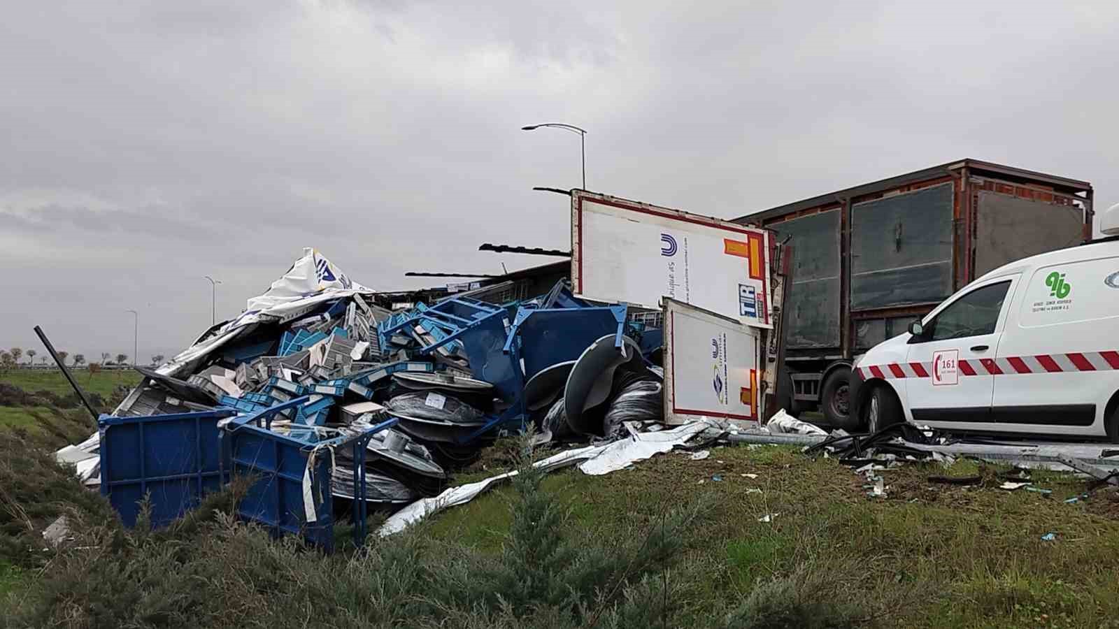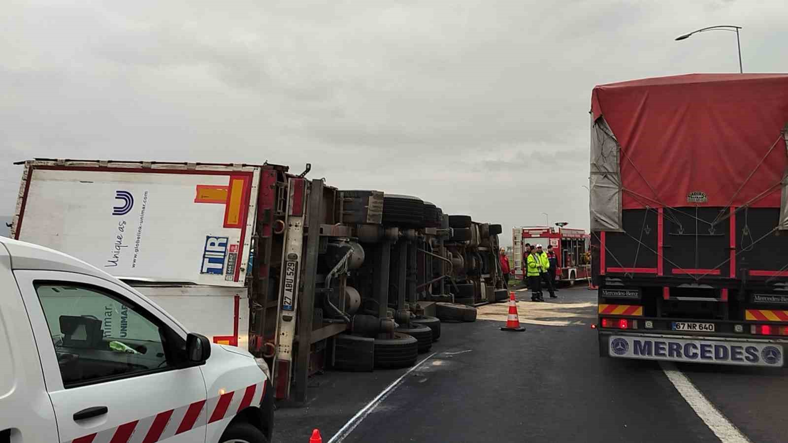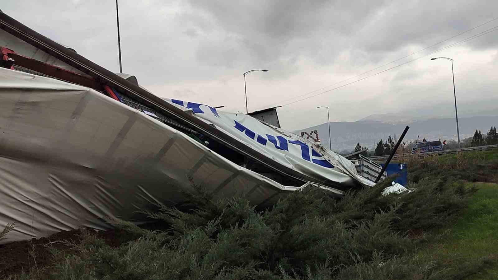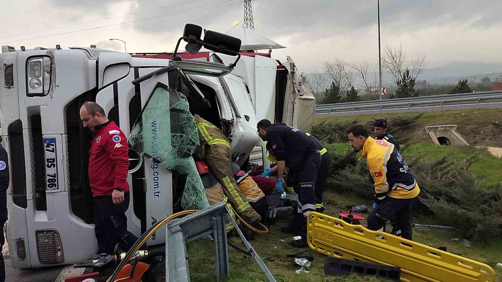 ,Edinilen bilgiye göre, Orhangazi kavşağında virajda kontrolden çıkan rulo halinde plastik kapı fitili yüklü bir tır devrildi. Tır içinde sıkışın sürücü, bölgeye gelen itfaiye ekiplerince çıkartıldı. Yaralı sürücü olay yerinde yapılan ilk müdahalenin ardından hastaneye kaldırılırken, kazayla ilgili soruşturma başlatıldı.