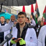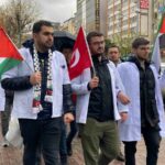 Doktorlar adına konuşan İsmail Özbey, “İşgalci İsrail’in Filistin’de yıllardır devam ettirdiği sistematik işgâl ve zulüm 7 Ekim’den bu yana soykırımdan başka hiçbir kelime ile anlatılamayacak boyutlara ulaşmakta. Gazze’de sivil, hasta, hekim, çocuk, kadın fark etmeksizin büyük bir katliam bütün dünyanın gözü önünde devam etmektedir. İnsan hakları ve uluslararası hukuk kuralları açıkça ihlâl edilerek binlerce vatandaş acımasızca katledildi. Tıbbı malzemelerin temini ve sağlık hizmetlerinin sunumu da engellenerek kuvözdeki bebeklerin dahi ölümüne sebep olundu. Hekimler olarak İsrail’in saldırıların karşı tepki göstermeye Gazze’deki vatandaşların hayatlarının koruması adına hekimlik mesleğine yakışır bir duruş ortaya koymaya kararlıyız. Başta dünya sağlık örgütü olmak üzere dünyadaki tüm hekim, sağlık çalışanı ve vicdanlı insanları harekete geçmeye çağırıyoruz” dedi.