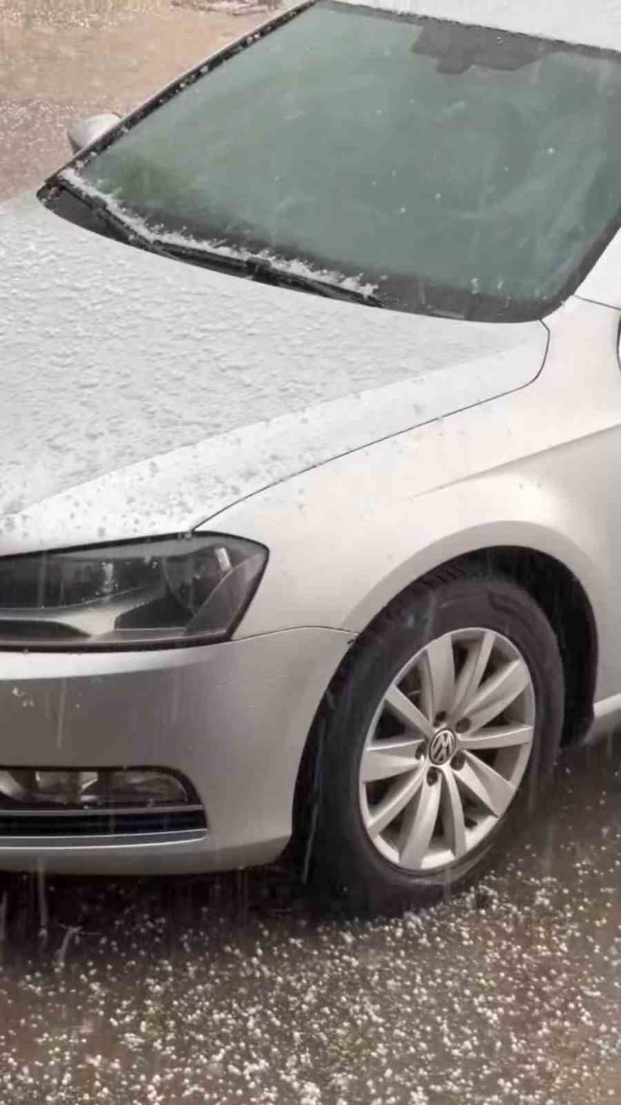 O anlar saniye saniye amatör kameraya yansırken, yağan dolu vatandaşlara zor anlar yaşattı.