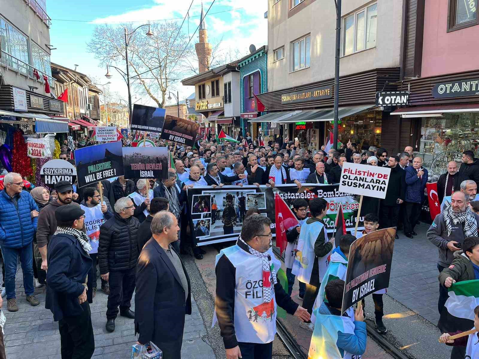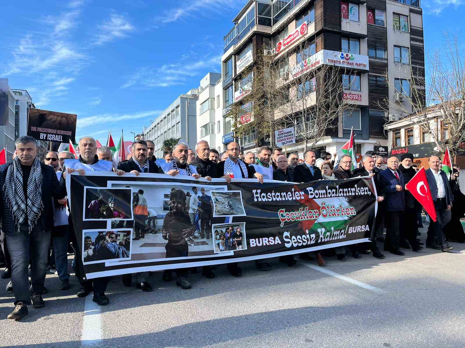 Bursa’da ’10 Aralık Dünya İnsan Hakları Günü’ nedeniyle binlerce kişi Filistin’e yapılan zulmü protesto etti. Vatandaşlar sloganlarla yürüyüş yaparken birçok sivil toplum kuruluşu ve siyasetçi de yürüyüşe katıldı.
