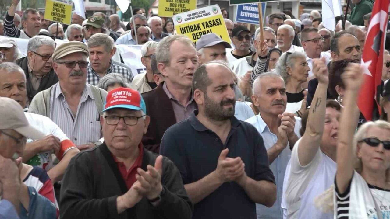 Bursa’da bir araya gelen emekliler, maddi imkanların yetersiz olduğu gerekçesiyle yürüyüş düzenledi.