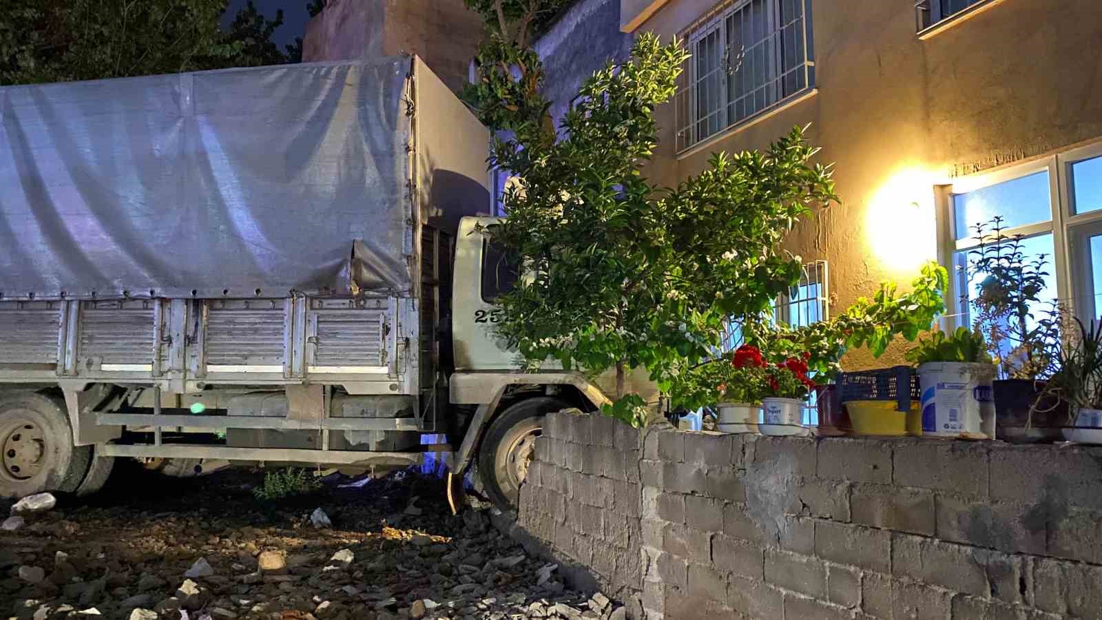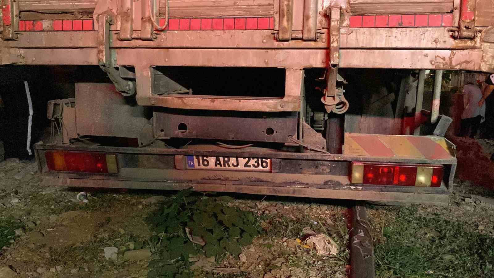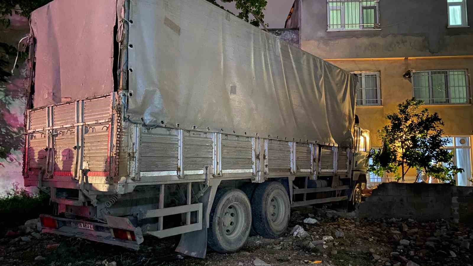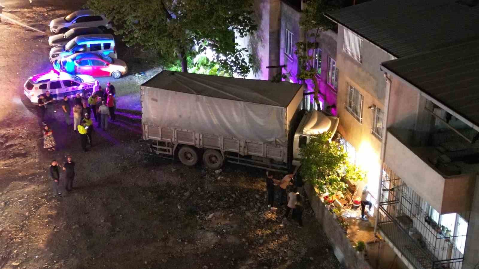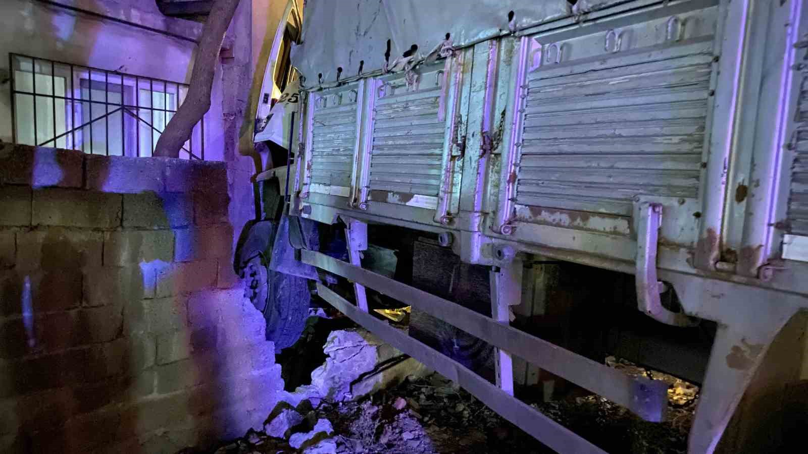 Bursa’da freni boşalan kamyon önce elektrik direğine çarptı ardından eve girdi. Kazada yaralanan olmazken evde hasar meydana geldi.