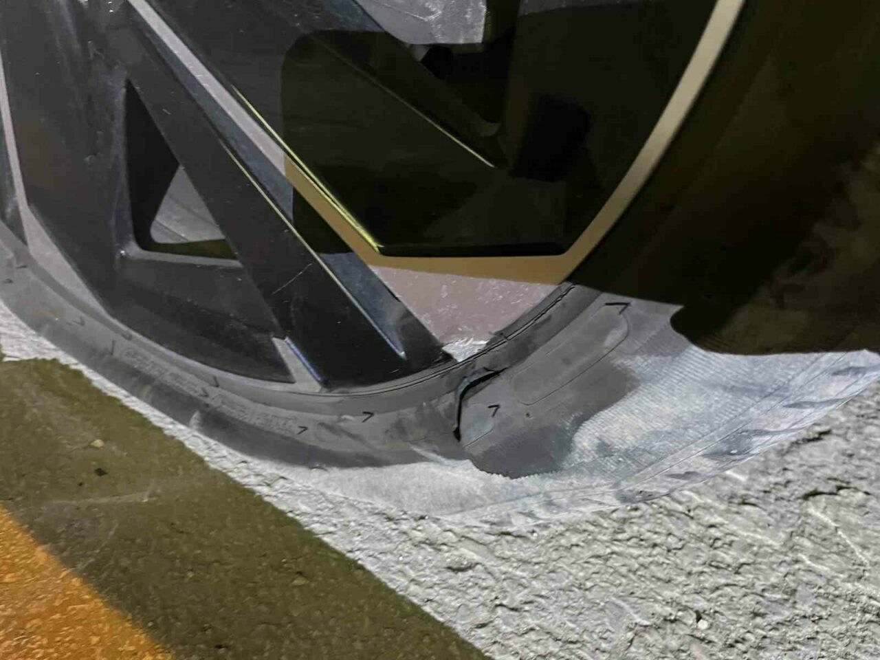 Bu sırada trafikte seyir halinde olan Fatih G. yönetimindeki otomobil, sürücünün manevra yapmasına rağmen demirin üzerinden geçti. Yaklaşık 100 metre sürüklenen demir parçası nedeniyle aracın sağ tarafındaki iki lastik parçalanırken, araç güçlükle durabildi.
