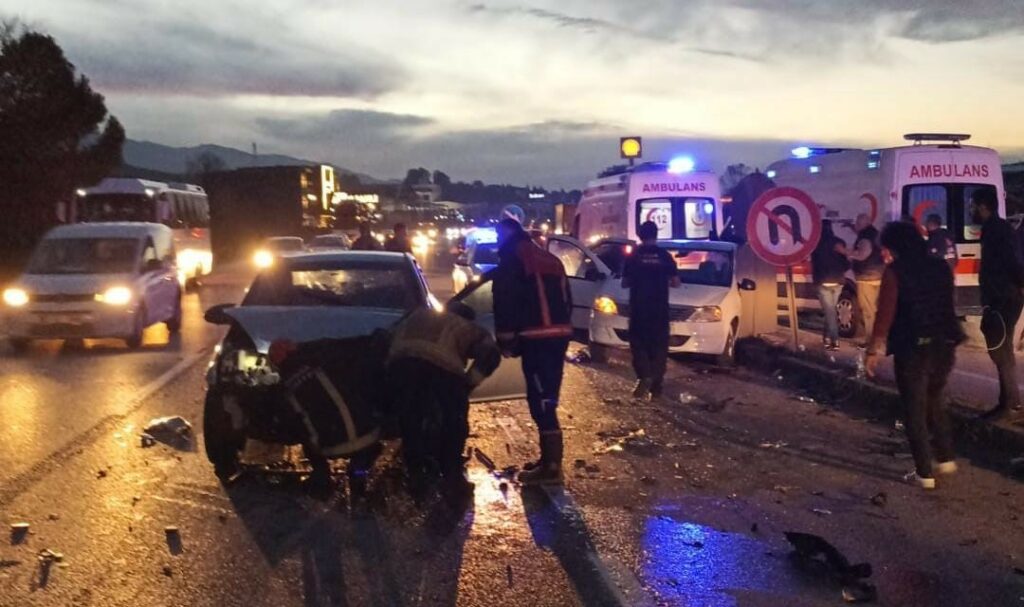 Bursa’dan İnegöl’e seyir halinde olan Yunus T. (36) yönetimindeki 16 ANU 66 plakalı otomobil, yoldan U dönüşü yapmak için manevra yapan sürücü Yahya H. (58) yönetimindeki 16 BBB 268 plakalı otomobil ile çarpıştı.