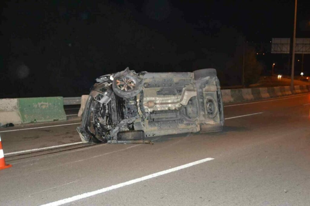 Bursa’da feci kaza: Bariyere çarpıp takla attı, 2 yaralı