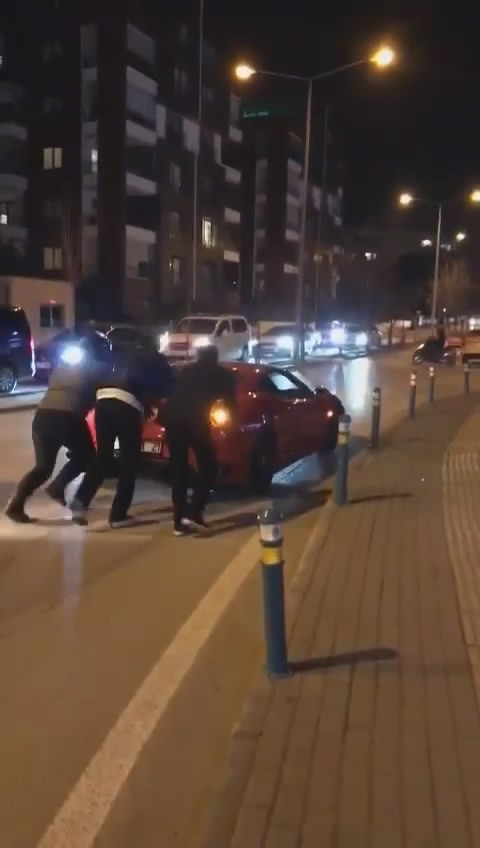 Bursa’da 20 milyon TL değerindeki lüks otomobil yolda kalınca iterek yol kenarına çektiler.