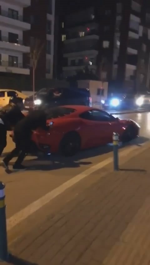 Merkez Nilüfer ilçesinde piyasada değeri yaklaşık 20 milyon TL olan Ferrari, henüz öğrenilemeyen bir sebepten dolayı yolda kaldı. Sürücü çevredekilerden yardım isterken, aracı iterek yol kenarına çektiler. Çevredeki vatandaşlar ise olan biteni hayretle izledi.