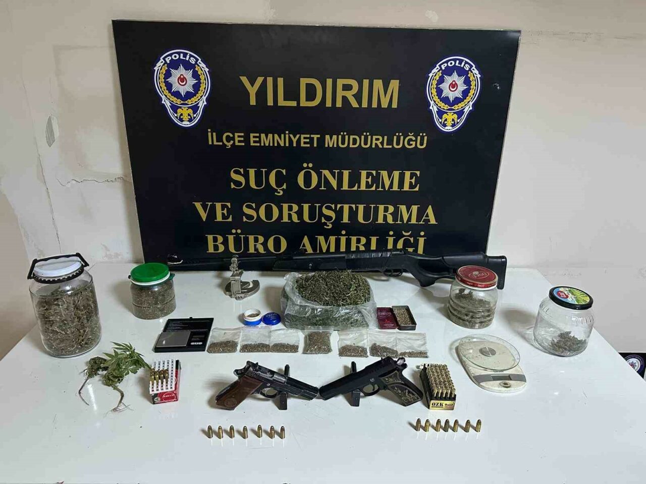 Yıldırım İlçe Emniyet Müdürlüğü Suç Önleme Ve Soruşturma (SÖS) Büro Amirliği ekipleri, uyuşturucu ticareti yapıldığı ve evde silah bulunduğu yönündeki ihbarlar üzerine harekete geçti. Şüphelilerin delilleri yok etmesini önlemek amacıyla ekipler, kapıyı dilenci kılığında çalarak dikkat çekmeden kapının açılmasını sağladı. Kapının açılmasıyla birlikte ekipler içeri girerek operasyonu başlattı.