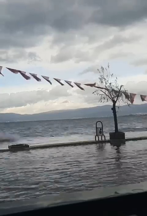 Alınan bilgiye göre, sabah saatlerinde etkili olan sağanak yağış Gemlik ilçesi Kurşunlu Sahili’nde denizin taşmasına sebep oldu. Dev dalgalar sahili döverken, deniz suyunun yükselmesi sonrası karayolu sular altında kaldı. Deniz suları Kurşunlu’da içlere kadar ilerlerken, araçlar karayolunda seyretmekte güçlük çekti.