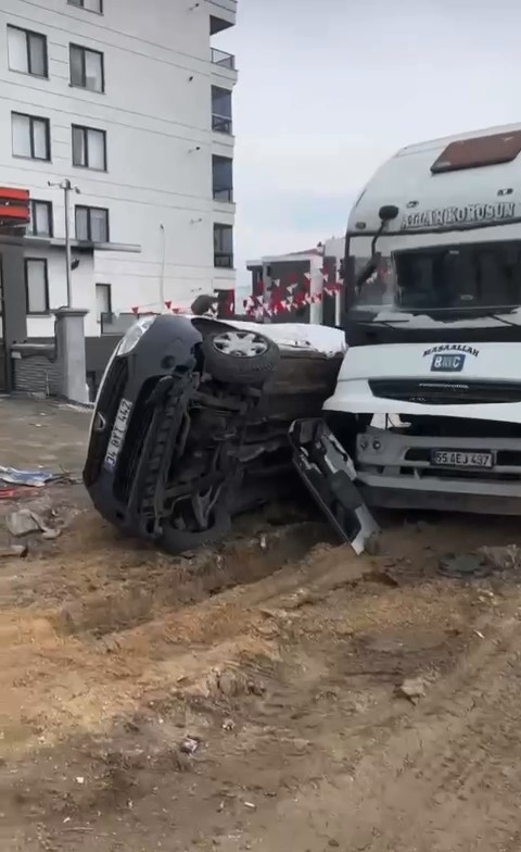 Bursa’da merkez Nilüfer ilçesi Kayapa Mahallesi’nde yokuşa park edilen 55 AEJ kamyonun frenleri boşaldı. Yolun eğimi ile birlikte geriye doğru hareket eden kamyon saniyeler içerisinde hızlandı. Arkasında park halinde bulunan 34 BYT plakalı hafif ticari araca çarpan kamyon güçlükle durdu. Yaşanan olayda araçların içinde kimsenin bulunmaması facianın önüne geçti. Kazada kamyonun çarptığı hafif ticari araç ağır hasar aldı.
