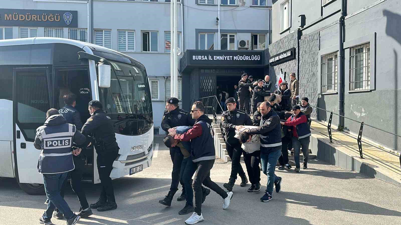 Asayiş Şube Müdürlüğü’nde işlemleri tamamlanan şüpheliler, geniş güvenlik önlemleriyle sevk edildikleri adliyede mahkemeye çıkarıldı. Zanlılardan 19’u tutuklanırken 12’si adli kontrol şartıyla serbest bırakıldı.