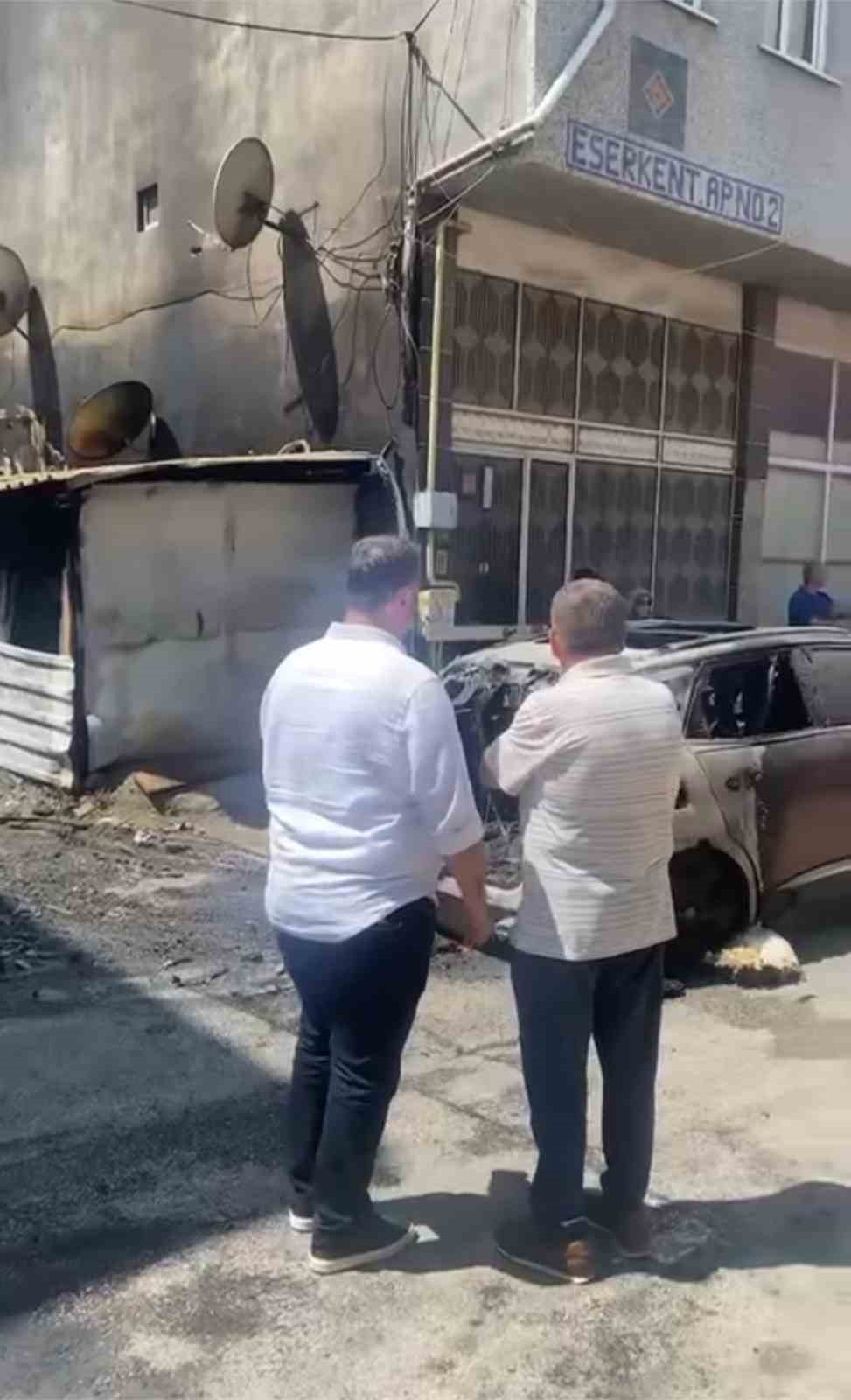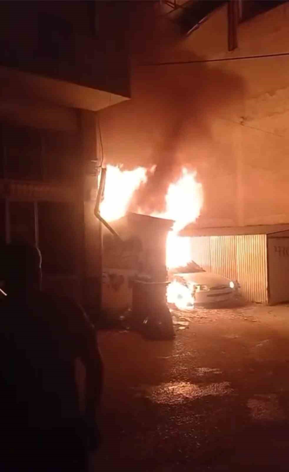 Bursa’da garajda çıkan yangın sonrası park halindeki 2 otomobil alev alev yanarak kullanılamaz hale geldi.
