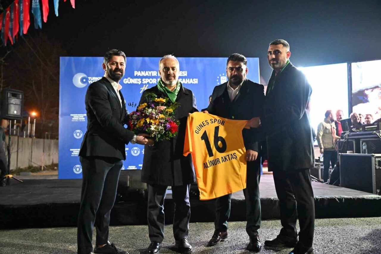 Konuşmaların ardından Kulüp Başkanı Şafak Yıldırım tarafından Başkan Alinur Aktaş’a günün anısına forma hediye etti. Açılış kurdelesini gençlerle birlikte kesen Başkan Aktaş ve protokol üyeleri, daha sonra halı sahada topun başına geçerek penaltı atışı yaptı.