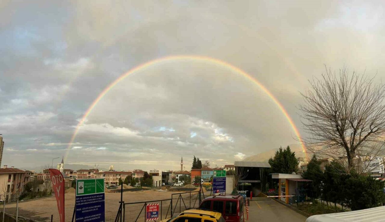 Bursa’da yağmurun ardından oluşan gökkuşağı, izleyenleri mest etti. Hafif yağmurun