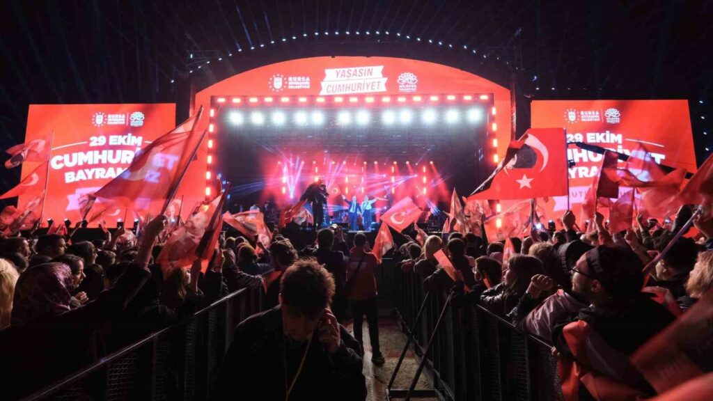 Cumhuriyet’in ilanının 101. yılını bütün Bursa birlikte Nilüfer’de kutladı. Bursa Büyükşehir Belediyesi ve Nilüfer Belediyesi’nin, bu yıl bir ilki gerçekleştirerek birlikte düzenlediği “Cumhuriyet Yürüyüşü”, yüz binleri FSM’de buluşturdu. Bursa halkının tek yürek olarak Cumhuriyet’e sahip çıktığı yürüyüşün ardından sanatçı Candan Erçetin sahne alarak Bursalılara muhteşem bir bayram coşkusu yaşattı.