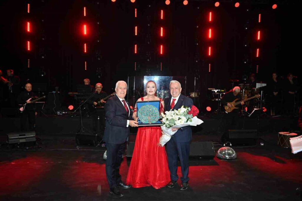 Bursa Büyükşehir Belediyesi ve Nilüfer Belediyesi’nin birlikte düzenlediği Cumhuriyet Bayramı kutlamalarının finalinde, sevilen sanatçı Candan Erçetin sahne aldı. Ünlü sanatçı sahneye çıktığında, alanı dolduran yüz binlerce kişide coşku doruğa çıktı. Candan Erçetin’in muhteşem sahne performansı, bayram coşkusu yaşayanlara keyifli anlar yaşattı. Bursalıların birçok parçasına eşlik ettiği Candan Erçetin’e, gecenin sonunda Bursa Büyükşehir Belediye Başkanı Mustafa Bozbey ve Nilüfer Belediye Başkanı Şadi Özdemir, çiçek vererek teşekkür etti.