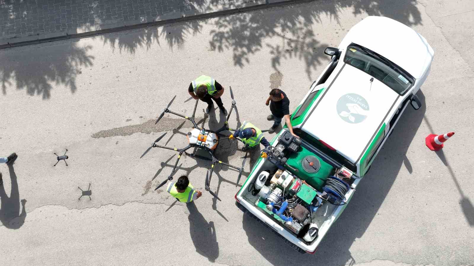 Bursa Büyükşehir Belediyesi Tarım Peyzaj A.Ş yaz aylarında artan başta sivrisinekler olmak üzere haşerelere karşı dronla mücadele başlattı. Araçların giremediği dere yatakları, sulak ve otluk alanlar başta olmak üzere birçok noktada kullanılan ilaçlama dronlarının sayısının artması planlanıyor. Tarım Peyzaj A.Ş, dronları sadece haşere ilaçlamada değil, ilerleyen zamanlarda mahsul yetişen tarla ve bahçelerde de kullanmayı hedefliyor. Nilüfer ilçesine bağlı Kayapa Mahallesi’nden geçen derede haşerelere karşı dronla ilaçlama yapıldı.