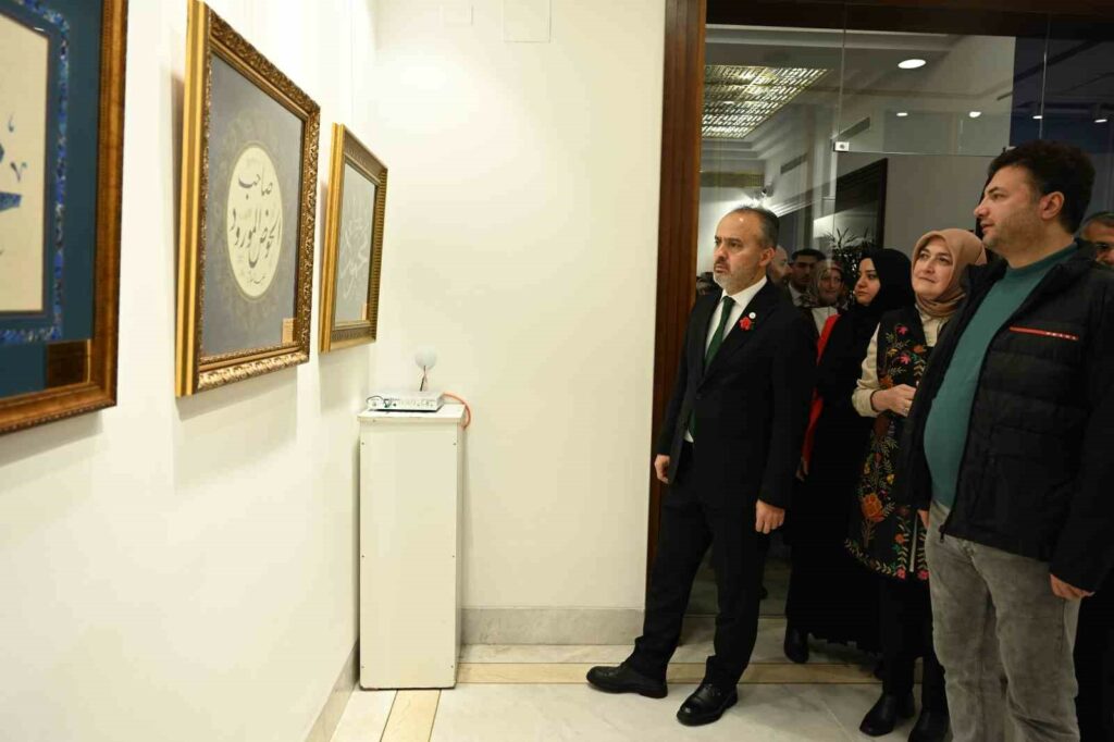 Bursa Büyükşehir Belediyesi’nin BUSMEK kursiyerleri desteğiyle oluşturduğu ve 31 eserden oluşan ‘Hilye-i Şerif ve İsm-i Nebi’ sergisi, Tayyare Kültür Merkezi’nde ziyarete açıldı.