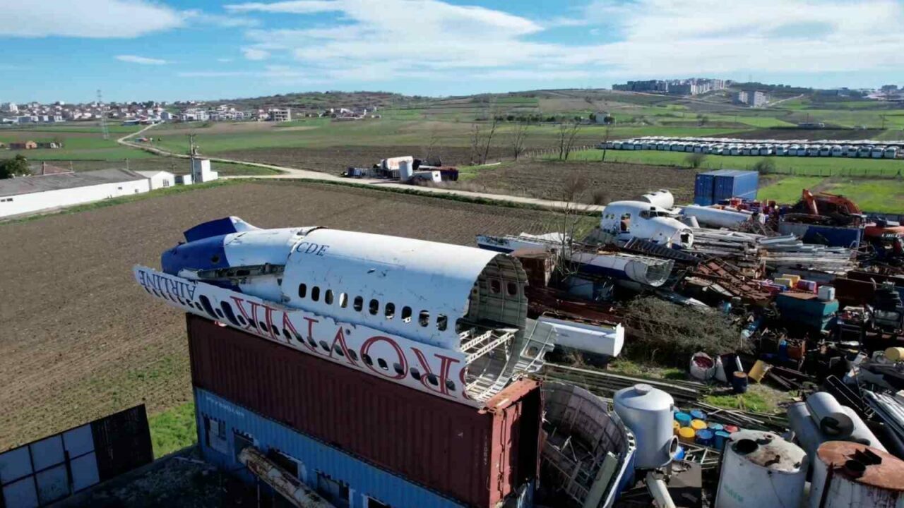 Bursa’da bir geri dönüşüm tesisindeki hurda Boeing 747 model yolcu uçağı, görenleri hayrete düşürüyor. Tesis sahasında bulunan 4 parçaya ayrılmış dev uçak, yoldan geçen vatandaşların yanı sıra bölgede eğitim uçuşu yapan pilotların da dikkatini çekiyor. Bursa’ya 10 yıl önce restoran yapılmak üzere İstanbul’dan getirilen ancak daha sonra atıl kalınca satılan uçak şimdi restoran, kafe veya benzer amaçlarla kullanılmak üzere yeni müşterisini bekliyor. Geri dönüşüm tesisi sahibi uçağa 2,5 milyon lira istediğini, bunun sadece alüminyum hurda fiyatı olduğunu ve 4 parçanın birleştirilebileceğini söyledi.