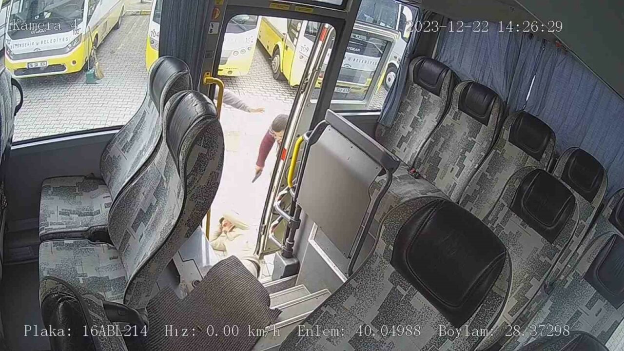 Bursa’da bir kişi, babasına yumruk atan ve itekleyen husumetlisine önce minibüste kurşun yağdırdı, ardından acımasızca darbetti. Olay anı saniye saniye minibüsün güvenlik kamerasına yansıdı.