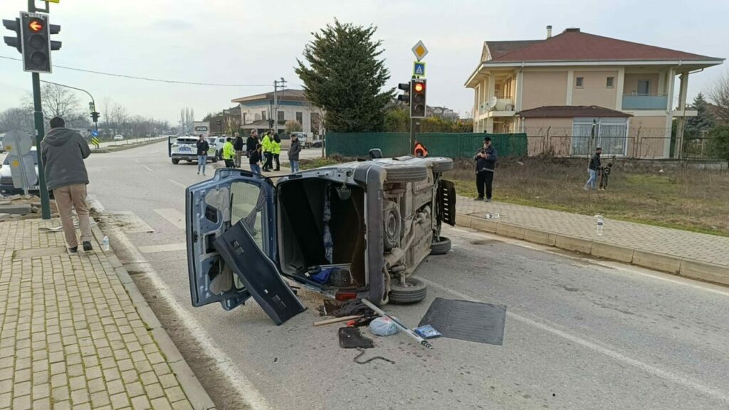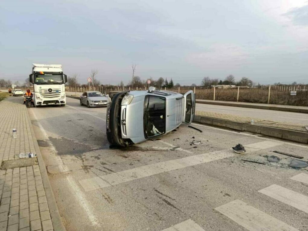 Kaza, saat 16.30 sıralarında Mahmudiye Mahallesi Ortaköy Yolu Caddesi ile Ahmet Türkel Çevre Yolu’nu birbirine bağlayan ışıklı kavşakta meydana geldi. Ortaköy’den İnegöl’e seyir halinde olan Necati K. (61) idaresindeki 16 APL 967 plakalı Dacia marka cip, Kamuran E. (34) idaresindeki 35 AR 2462 plakalı Peugeot marka hafif ticari araca yandan çarptı. Çarpmanın etkisiyle yön tabelası ve kaldırıma çarpan hafif ticari araç devrildi. Kazada sürücüler ile hafif ticari araçtaki yolcular Hamrusena K. (28) ve Seyfettin K. (58) yaralandı. Yaralılar kaza yerine sevk edilen ambulansla İnegöl Devlet Hastanesine kaldırıldı.