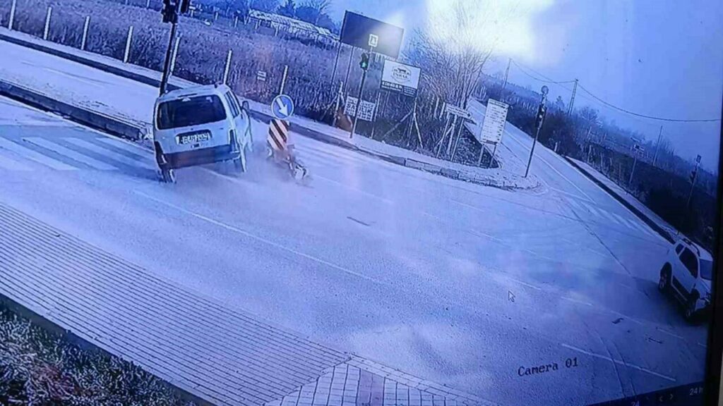 Bursa’nın İnegöl ilçesinde iki otomobilin çarpıştığı kazada 4 kişi yaralandı. Kaza anı bir iş yerinin güvenlik kamerasına saniye saniye yansıdı.