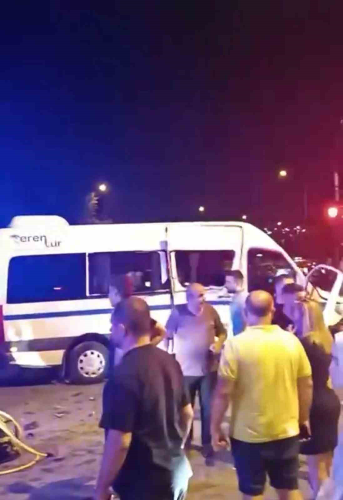 Bursa’da kırmızı ışık ihlali yapan kamyonet, dönüş yapan servis aracına çarptı. İşçilerin olduğu serviste 6 kişi, kamyonette de 2 kişi olmak üzere toplam 8 kişi yaralandı.