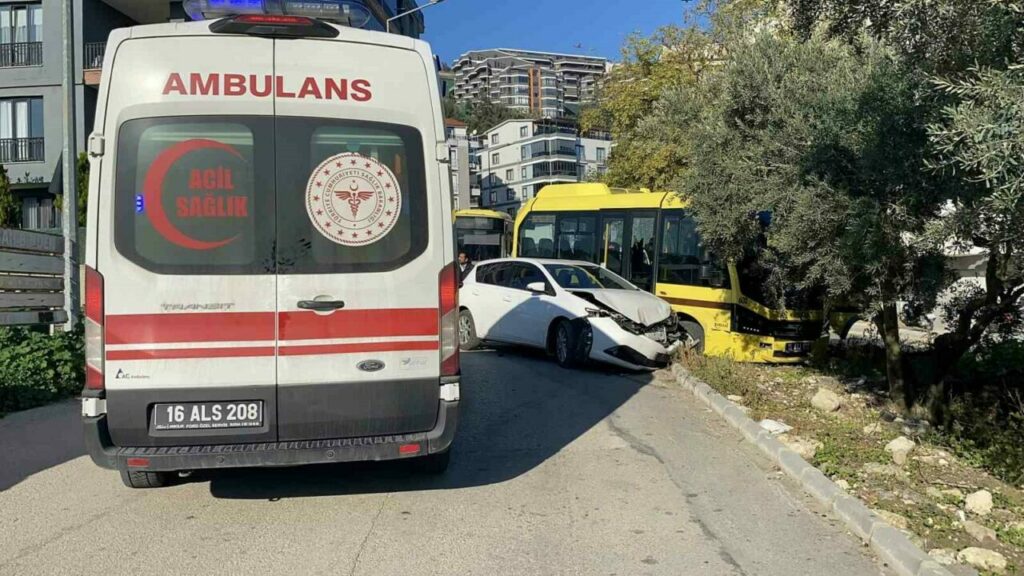 Mudanya ilçesi Siteler Mahallesi’nde saat 10.15’te meydana gelen trafik kazası, bölgede paniğe yol açtı. Bilim Caddesi’nden ilerleyen 2GH hattına bağlı 16 ATJ plakalı Burulaş otobüsü, Efeler Caddesi yönünden gelen 16 UAH plakalı otomobille çarpıştı. Çarpışmanın şiddetiyle her iki araç savrularak yol kenarında güçlükle durabildi.