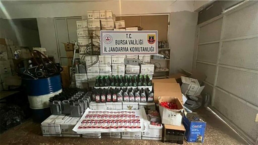Bursa İl Jandarma Komutanlığı Kaçakçılık ve Organize Suçlarla Mücadele Şube Müdürlüğü ekipleri, merkez Osmangazi ve Nilüfer ilçelerinde belirlenen depo ve iş yerlerine operasyon düzenledi. Operasyonda 9 bin 200 litre akaryakıt/dizel (baz yağ-atık yağ), 1 adet rezistans yağ ısıtıcı/temizleyici, 1 adet mekanik varil pompası, 2 adet sıvı aktarımında kullanılan santrifüj pompa, 4 bin 995 adet madeni yağ etiketi, 530 adet yağ bidonu, 740 adet yağ bidonu kapağı, 900 adet yağ bidonu kapak folyası, 10 metre hortum ve 1 adet folyo kapak yapıştırma makinesi ele geçirildi. Gözaltına alınan 5 şüphelinin işlemleri sürüyor.