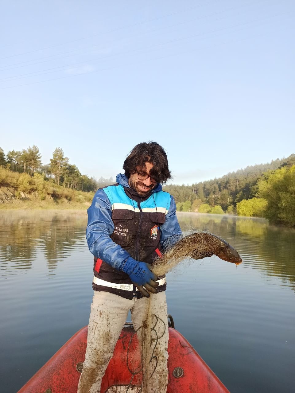 Bursa İl Tarım ve Orman Müdürlüğü Balıkçılık ve Su Ürünleri Şubesi tarafından gerçekleştirilen su ürünleri denetimleri Bursa’nın Orhaneli ilçesi Kocasu deresinde yapıldı. Su içerisinde serili halde bulunan sahipsiz 350 metre misina ağa ve 300 metre paraketa av aracına el koydu. Yapılan denetimlerde 25 adet (yaklaşık 100 kilo civarında) anaç pullu sazan ve aynalı sazan ağlardan kurtarılarak yaşam alanlarına bırakıldı. Denetim süresince 1 kişiye idari para cezası uygulanırken, sabaha karşı 04.00 sularında başlayan denetim saat 10.00’da sonlandırıldı. Bir personeli ağdan kurtardığı balığı inceleyerek, balıkların üreme döneminde olmasına dikkat çekti.