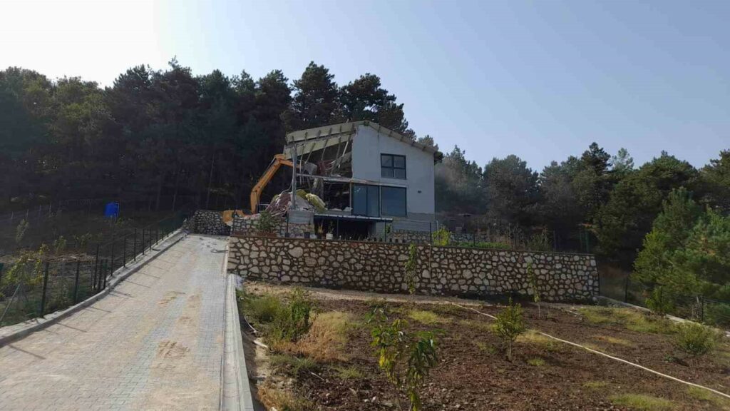 Osmangazi Belediyesi, Uludağ eteklerinde yer alan Gökçeören Mahallesi’nde imara aykırı şekilde inşa edildiği belirlenen lüks villayı yıktı.