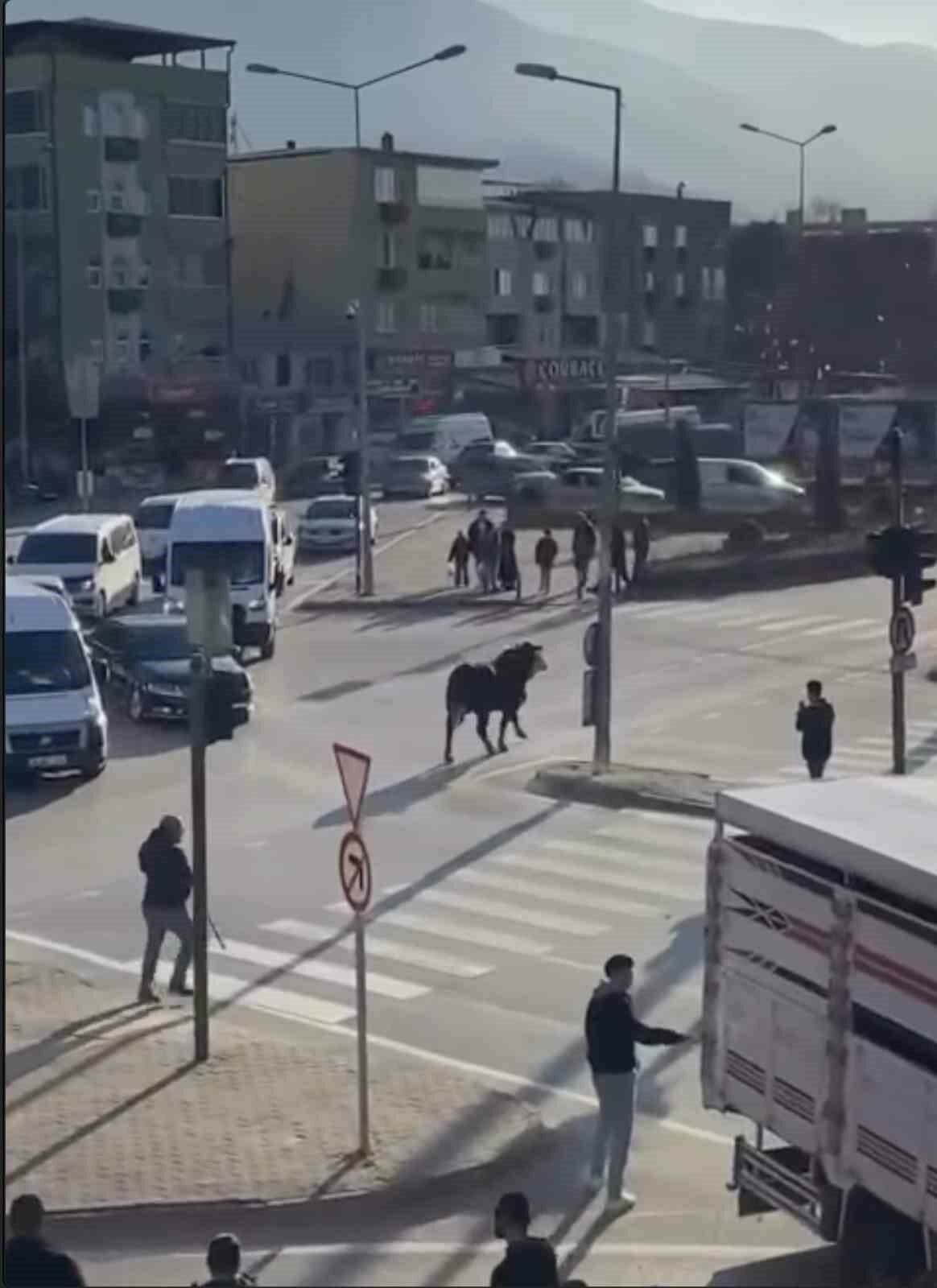 Edinilen bilgiye göre olay, Yıldırım ilçesinde bulunan Cumalıkızık Metro İstasyonu çevresinde meydana geldi. Cumalıkızık’ta bulunan bir çiftlikten kaçan boğa, kısa sürede Ankara Yolu istikametine çıkarak trafikte ilerlemeye başladı. Yolda koşan boğayı fark eden sürücüler panik yaşarken, bazı araçlar hızlarını düşürdü. İhbar üzerine bölgeye gelen trafik ekipleri, Ankara yolu üzerinde kontrollü şekilde güvenlik önlemleri alarak muhtemel bir kazanın önüne geçti. Ankara yolu boyunca koşarak Gürsu ilçesine kadar ilerleyen boğa, trafikte zaman zaman tehlikeli anların yaşanmasına neden oldu. Polis ekipleri yol üzerinde güvenlik önlemi alırken, sürücüler de dikkatli şekilde ilerledi.