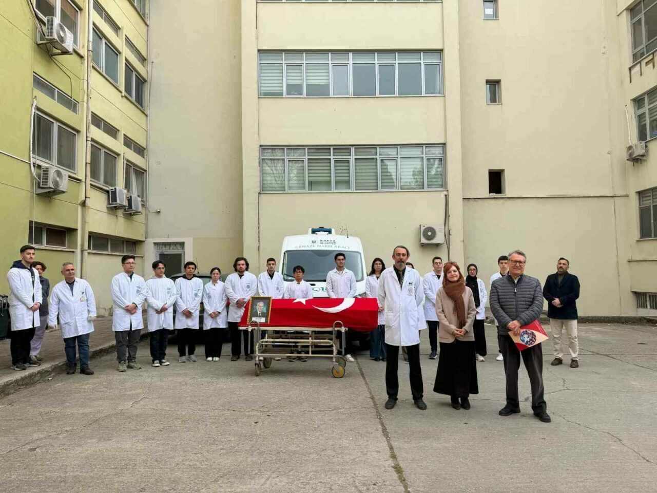 BURSA ULUDAĞ ÜNİVERSİTESİ (BUÜ) TIP FAKÜLTESİ’NDE UZUN YILLAR BOYUNCA EĞİTİM VE BİLİMSEL ARAŞTIRMALARDA KULLANILAN BİR KADAVRA, DÜZENLENEN ANLAMLI BİR TÖRENLE AİLESİNE TESLİM EDİLDİ.