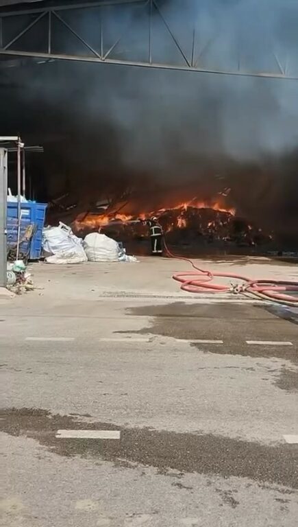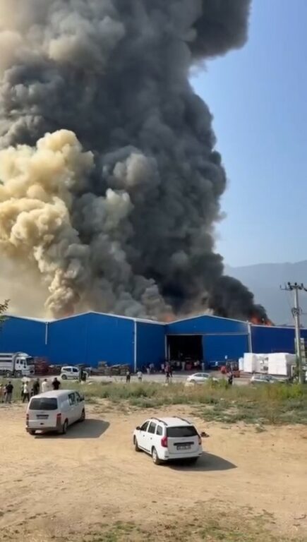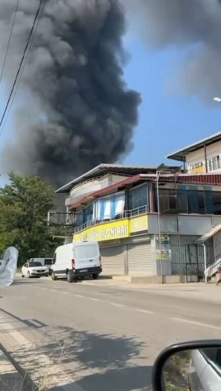 Bursa’nın Yıldırım ilçesinde kağıt ve elyaf üretiminin yapıldığı fabrikada yangın çıktı. Kısa sürede büyüyen yangın sebebiyle çevredeki evler boşaltılırken; yangına itfaiye araçlarının yanında Toplumsal olaylara müdahalede kullanılan Bursa Emniyetinin TOMA ve Tarım Aş’nin sulama tankerleri de müdahale ediyor.