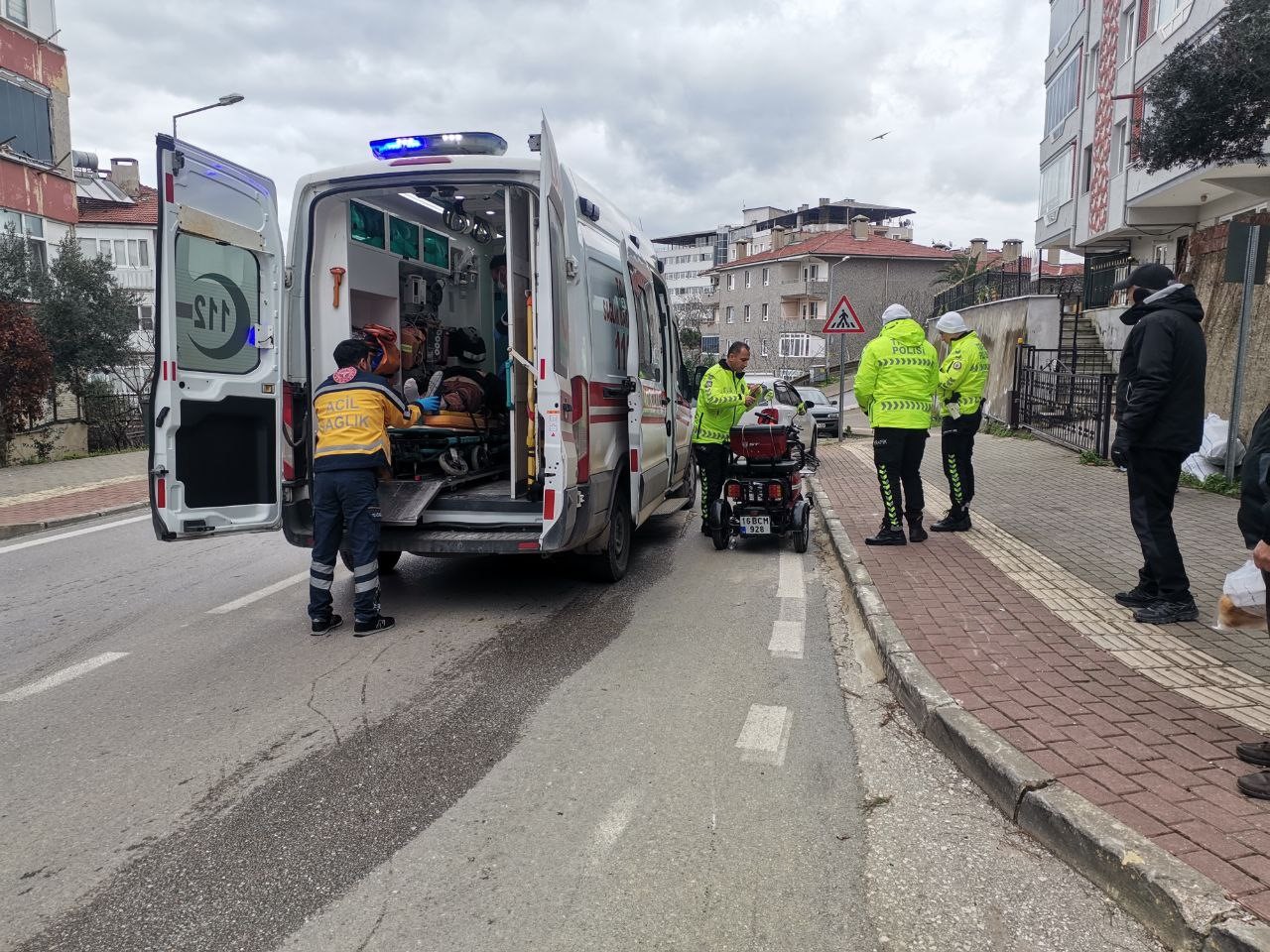 Kaza, Şehit Hakan Tamaç Caddesi’nde elektrikli motosiklet sürücüsünün direksiyon hakimiyetini kaybederek kaldırıma çıkması sonucu meydana gelirken, kazada sürücü hafif yaralandı. Kaza sonrası çevredekilerin ihbarı üzerine olay yerine 112 Acil Servis ve polis ekipleri sevk edildi. Yaralı S.Y., olay yerindeki ilk müdahalenin ardından Mudanya Devlet Hastanesine kaldırıldı.