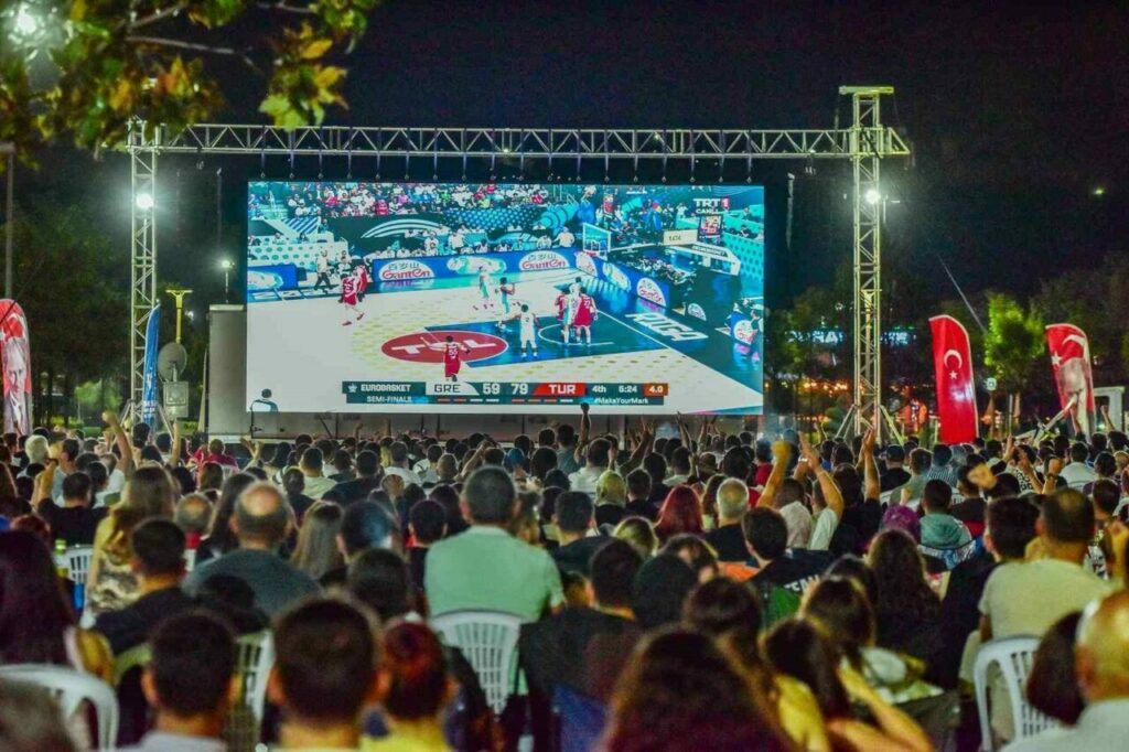 Avrupa Basketbol Şampiyonası (EuroBasket 2025) yarı finalinde Yunanistan’ı 94-68 skorla yenerek 24 yıl aradan sonra finale çıkma başarısı gösteren A Milli Erkek Basketbol Takımı’nın tarihi mücadelesi, Büyükşehir Belediyesi tarafından kurulan dev ekranda Bursalılar tarafından büyük bir heyecanla takip edildi.