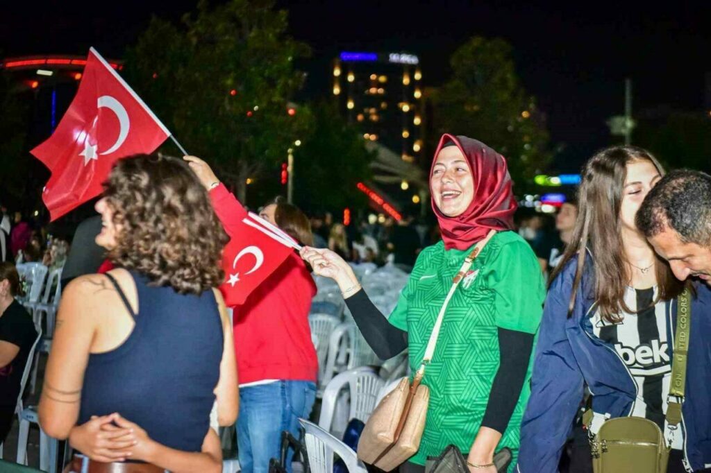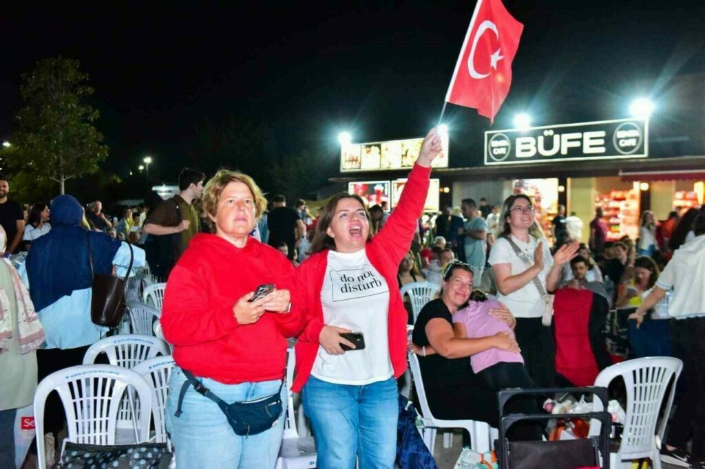 Bursa Büyükşehir Belediyesi tarafından A Milli Basketbol Takımı’nın 2025 Avrupa Basketbol Şampiyonası yarı finalindeki Yunanistan maçını Bursalıların bir arada büyük bir coşkuyla izleyebilmesi için Hüdavendigar Kent Parkı’nda dev ekran kuruldu. Maç öncesi alanı dolduran binlerce vatandaş, ellerindeki Türk bayraklarıyla alanı adeta salona çevirdi. Maçın başından sonuna kadar mücadelesini sürdüren 12 Dev Adam, performanslarıyla vatandaşlara büyük coşku yaşattı. Yunanistan’ın 94-68 skorla yenen A Milli Takım, 24 yıl aradan sonra Avrupa Basketbol Şampiyonası’nda finale çıkma başarısı gösterdi. Bitiş düdüğünün çalmasıyla büyük bir mutluluk yaşan Bursalılar, galibiyeti tezahürat atarak ve birbirlerine sarılarak yaşadı. A Milli Erkek Basketbol Takımı’nın Yunanistan maçını çok güzel bir atmosferde izleme şansı bulduklarını belirten vatandaşlar, emeklerinden dolayı Başkan Mustafa Bozbey’e ve Büyükşehir Belediyesi’ne teşekkür etti.