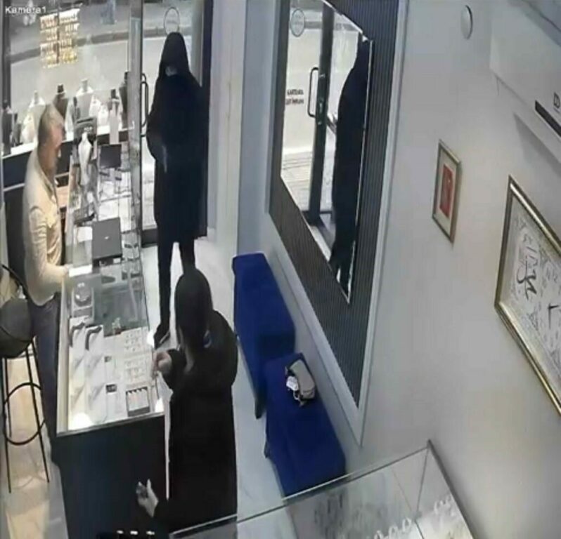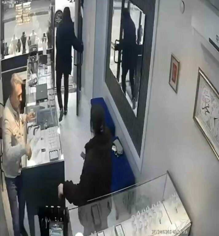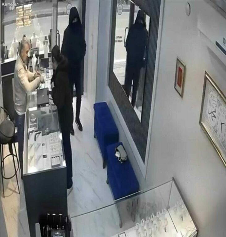 Bursa’da kuyumcuya soygun için gelen silahlı bir şüpheli, kararsız hareketleriyle kuyumcuya silah çekti. Paniğe kapılan soyguncu koşarak dükkandan kaçtı. İlginç anlar kameraya anbean yansıdı. Olay, merkez Yıldırım ilçesi Teleferik Mahalle’sinde uzun süredir kuyumculuk yapan S.A., işletmesinde müşteriyle ilgilenirken, kapıdan yüzü maskeli bir şüpheli girdi. Bir süre kendi aralarında bakışan soyguncu, kuyumcuya kararsız hareketlerle silah çekip, […]