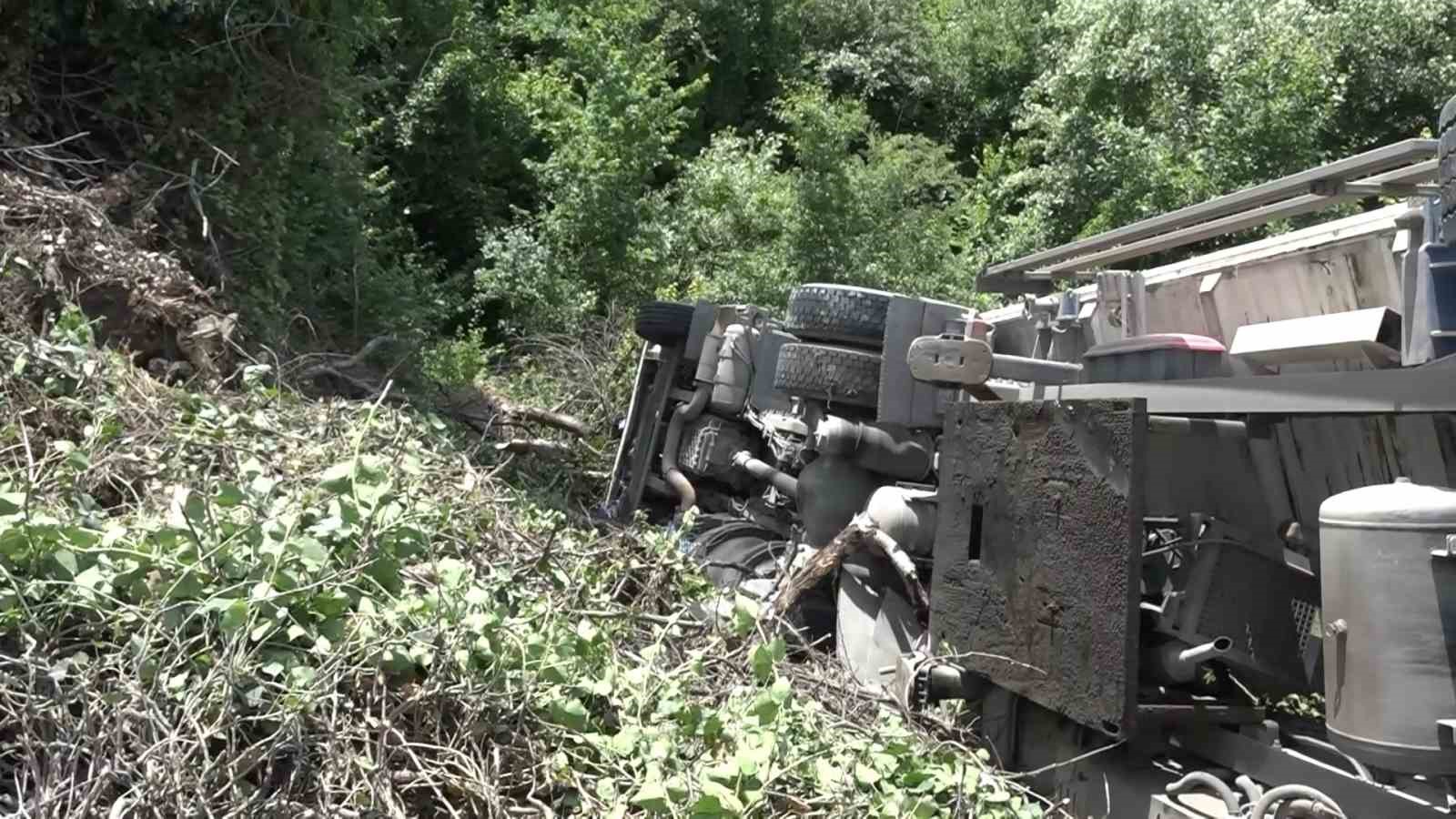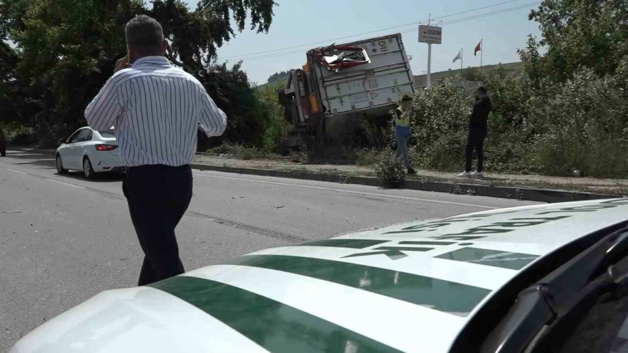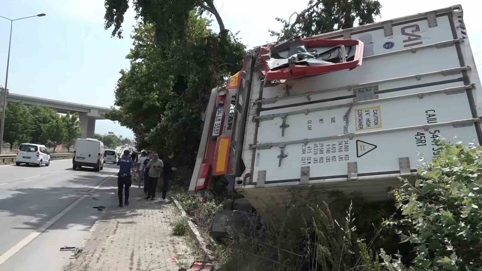 Bursa’da seyir halindeki kamyon ile çarpışan tır şarampole uçtu. Kazada, tır sürücüsü yaralanarak hastaneye kaldırıldı.