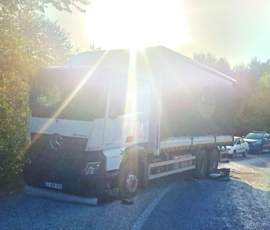 Kaza saat 19.00 sıralarında İnegöl-Domaniç karayolu İnegöl’ün Tahtaköprü mahallesi mevkiinde meydana geldi. Karayolu üzerinde seyir halinde olan Sürücü Halil G.(30) yönetimindeki 16 JUD 09 plakalı kamyonet, sürücüsünün kontrolünden çıkarak önünde seyreden sürücü Ahmet G.(46) yönetimindeki 143 AFN 019 plakalı kamyona arkadan çarptı. Çarpmanın etkisiyle savrulan kamyonet istinat duvarına da çarparak durabildi. Kaza sonucu kamyonetin sürücüsü yaralandı. Yaralı kaza yerine sevk edilen Ambulansla İnegöl Devlet Hastanesine kaldırıldı.