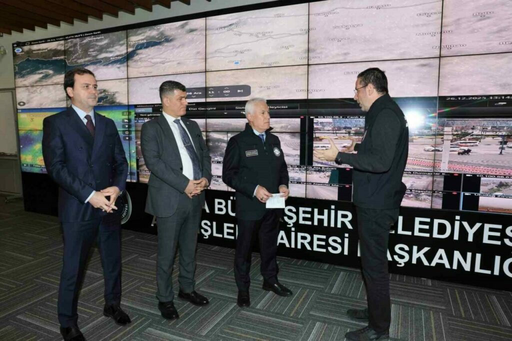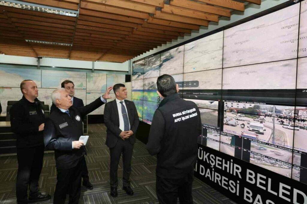 Bursa Büyükşehir Belediye Başkanı Mustafa Bozbey, Afet Koordinasyon Merkezi’ni (AKOM) ziyaret ederek yağış beklentisi ve yapılan hazırlık çalışmaları hakkında bilgi aldı. Büyükşehir ekiplerinin yoğun kar yağışı dahil olmak üzere en nitelikli hizmeti verecek şekilde hazır bulunduğunu belirten Başkan Bozbey, “Ekiplerimiz ve ilçe belediyelerin ekipleri uyum içinde çalışarak çıkabilecek olumsuzlukları en aza indirmek amacıyla sahada olacak. Ayrıca yolda kalan vatandaşlarımız bir telefon aracılığıyla bize ulaşabilir. Onlara hem sıcak yemek desteği, hem de yolda kalma ve benzeri durumlarda teknik müdahale desteği vereceğiz. Arkadaşlarımız her türlü hazırlığı yapmış durumda. Bursalılar hiç endişe etmesin” diye konuştu.